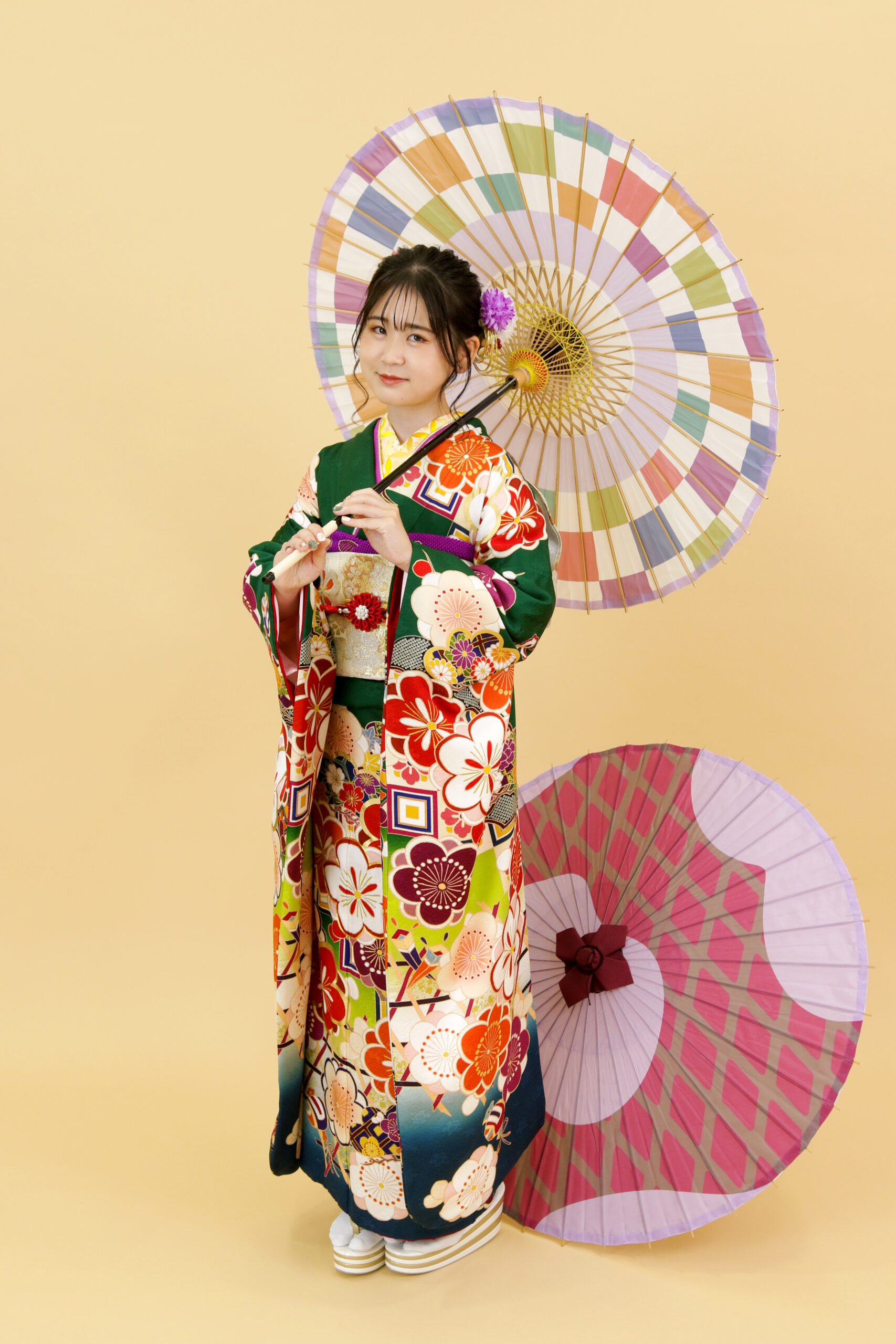 ここにきて緑色の振袖を選ぶ人がグッと増えております。