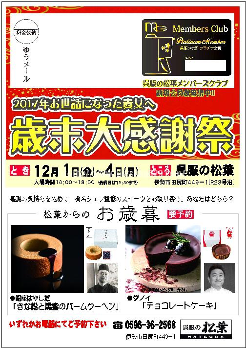 ●年末の営業 2017年12月28日(木) 18:00まで