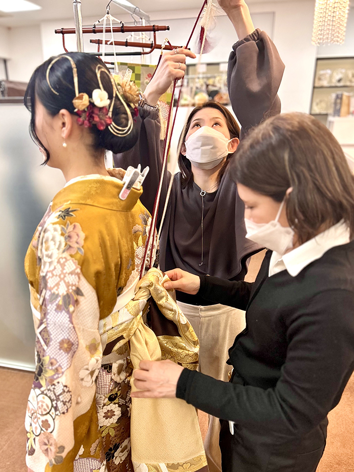 ▼ヘアメイクが完成すると1Fでお着付け